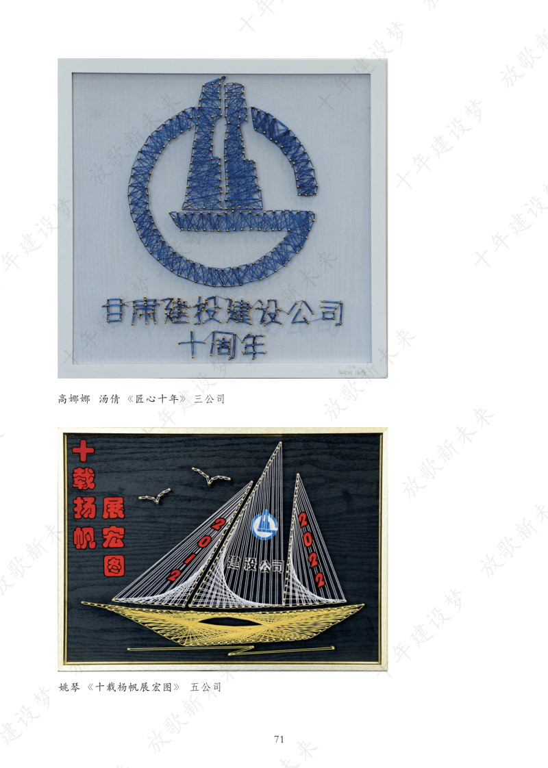 為更好聚焦企業(yè)發(fā)展變遷,深挖企業(yè)精神內(nèi)涵,引導(dǎo)全司職工從企業(yè)十年發(fā)展的歷程軌跡中汲取力量,以強(qiáng)烈的責(zé)任感和飽滿的精神狀態(tài)投入到各項工作中。根據(jù)公司黨委關(guān)于《慶祝建司十周年主題宣傳及系列活動實(shí)施方案》的通知要求,建設(shè)公司工會組織開展了慶祝建司十周年“征文活動”、“第二屆職工藝術(shù)作品展”等活動。此次系列活動共收到140余名職工的168件作品,包括征文、書法、油畫、國畫、攝影、十字繡、剪紙、小制作等十多個種類。最終經(jīng)過各基層工會主席評選確定入冊作品155件,其中攝影作品38件、書法作品38件,美術(shù)作品26件,手工作品17件,征文作品36篇。這些作品創(chuàng)意新穎,主題突出,內(nèi)容豐富,充分體現(xiàn)了企業(yè)精神譜系和廣大職工的精神面貌,從不同角度展示了全司廣大職工的聰明智慧和藝術(shù)才華,反映了職工們心系企業(yè)、愛崗敬業(yè)、構(gòu)建和諧社會的熾熱情懷。