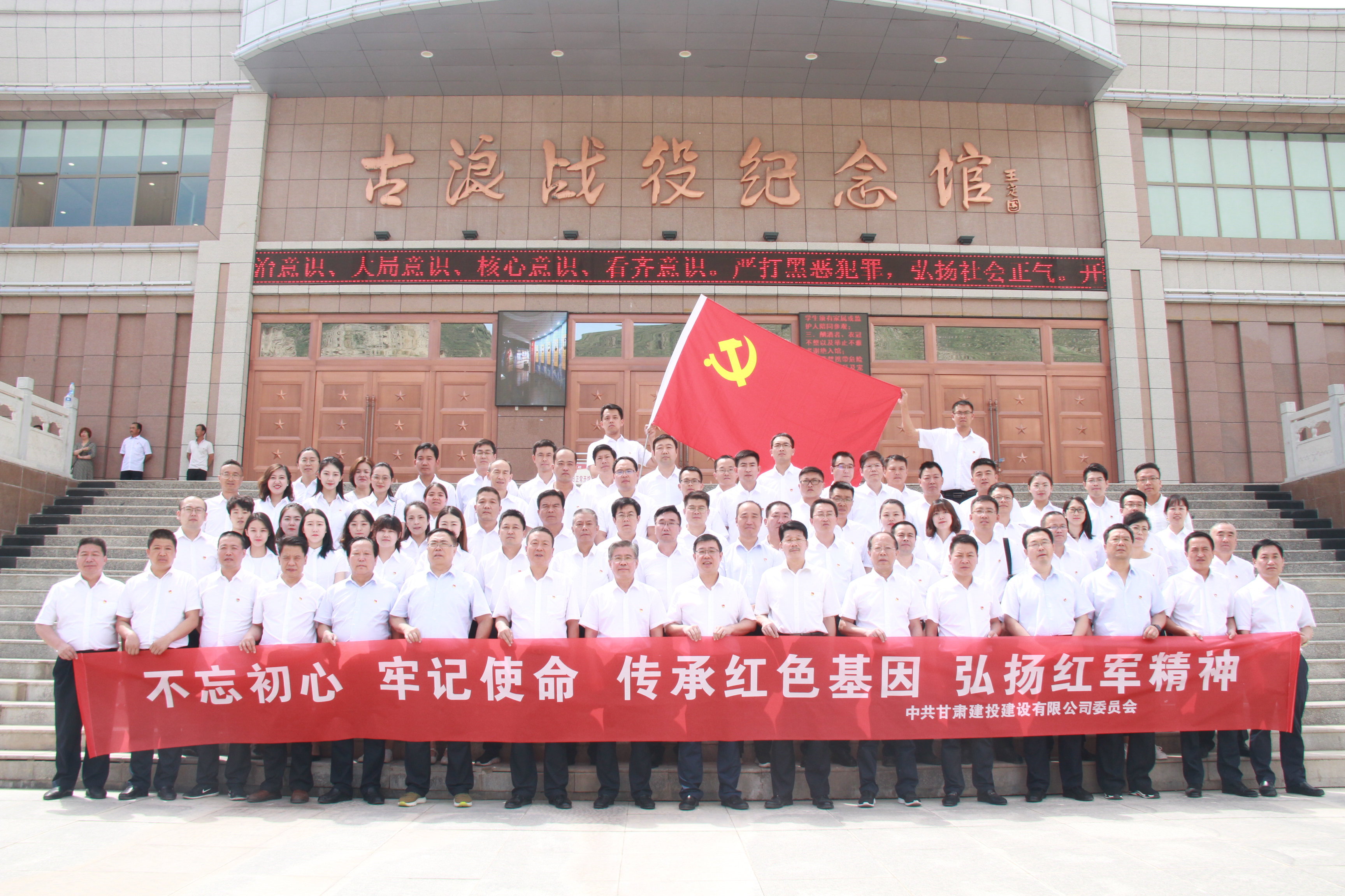 為慶祝中國共產(chǎn)黨建黨98周年,7月2日,建設(shè)公司黨委開展慶祝“七·一”表彰大會暨“不忘初心、牢記使命”主題教育推進會。建設(shè)公司領(lǐng)導班子成員,基層公司處級干部,黨支部書記、黨支部副書記,先進黨支部、先進黨小組代表,優(yōu)秀共產(chǎn)黨員、優(yōu)秀黨務(wù)工作者,黨員示范工程、三優(yōu)項目代表,部分黨員代表共80余人赴武威古浪戰(zhàn)役紀念館開展了相關(guān)活動。