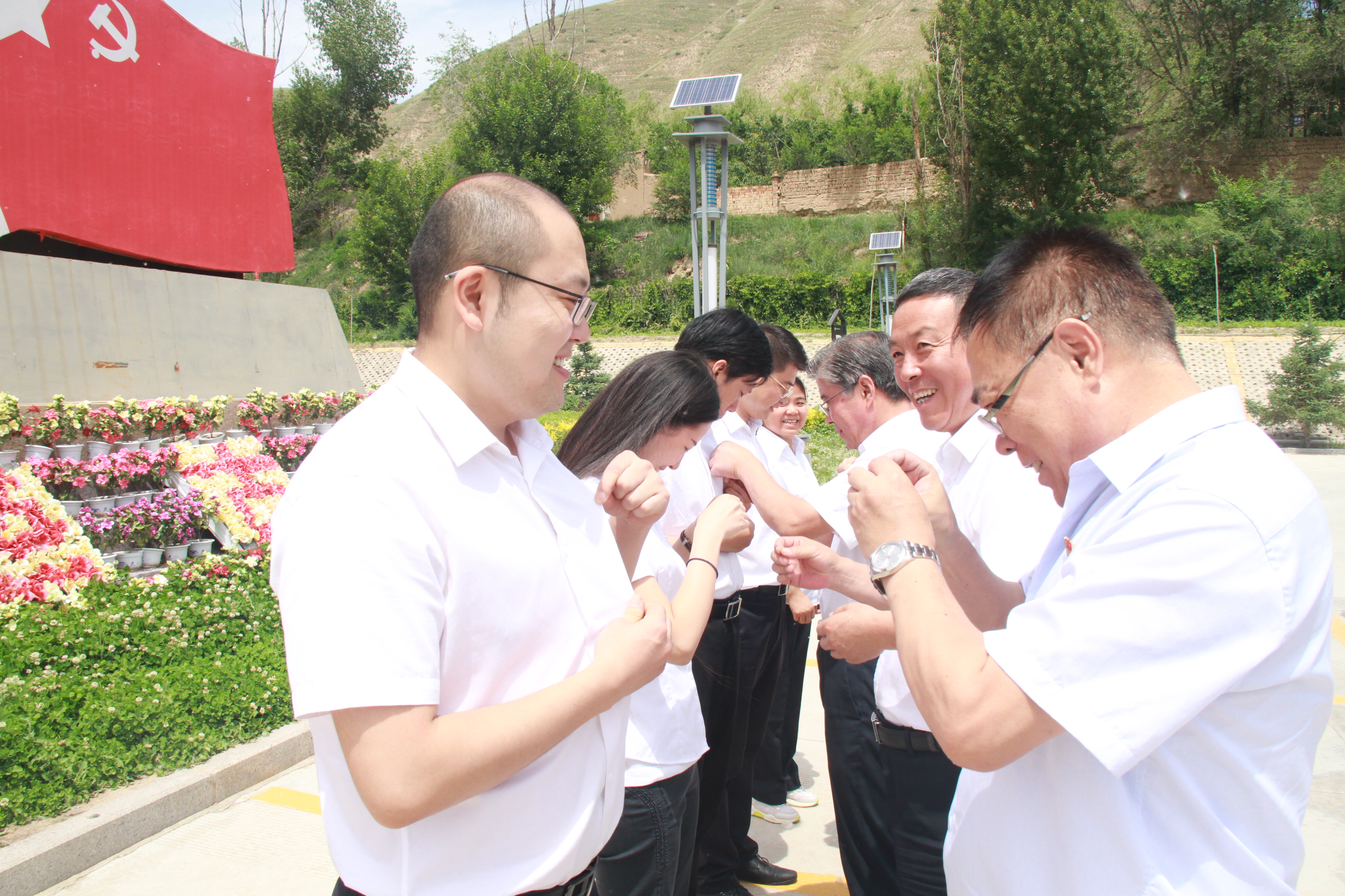 上午,全體黨員來到武威古浪戰(zhàn)役紀念館參觀學習并開展主題黨日活動,在西路軍革命烈士紀念碑前,大家跟隨講解員的講解,回顧西路軍在古浪的征戰(zhàn)歷史,學習與傳承西路軍的英雄事跡和不怕犧牲血戰(zhàn)到底的大無畏革命精神,同時向革命先烈默哀致敬并敬獻花籃、花圈。隨后,公司領(lǐng)導為新黨員佩戴黨徽,面對鮮紅的黨旗,全體黨員重溫了入黨誓詞。在參觀古浪戰(zhàn)役紀念館的過程中,大家先后觀看了展覽《壯懷千秋》、主題展覽《西風烈·戰(zhàn)旗紅》與尾片《紅色基因代代傳》,在圖片展示、文物陳列、雕塑凸現(xiàn)、音樂場景、視頻資料等多種形式的綜合陳展下,全體黨員全面而深刻地體會到了紅軍西路軍當年浴血奮戰(zhàn)的無畏精神和壯烈情懷。