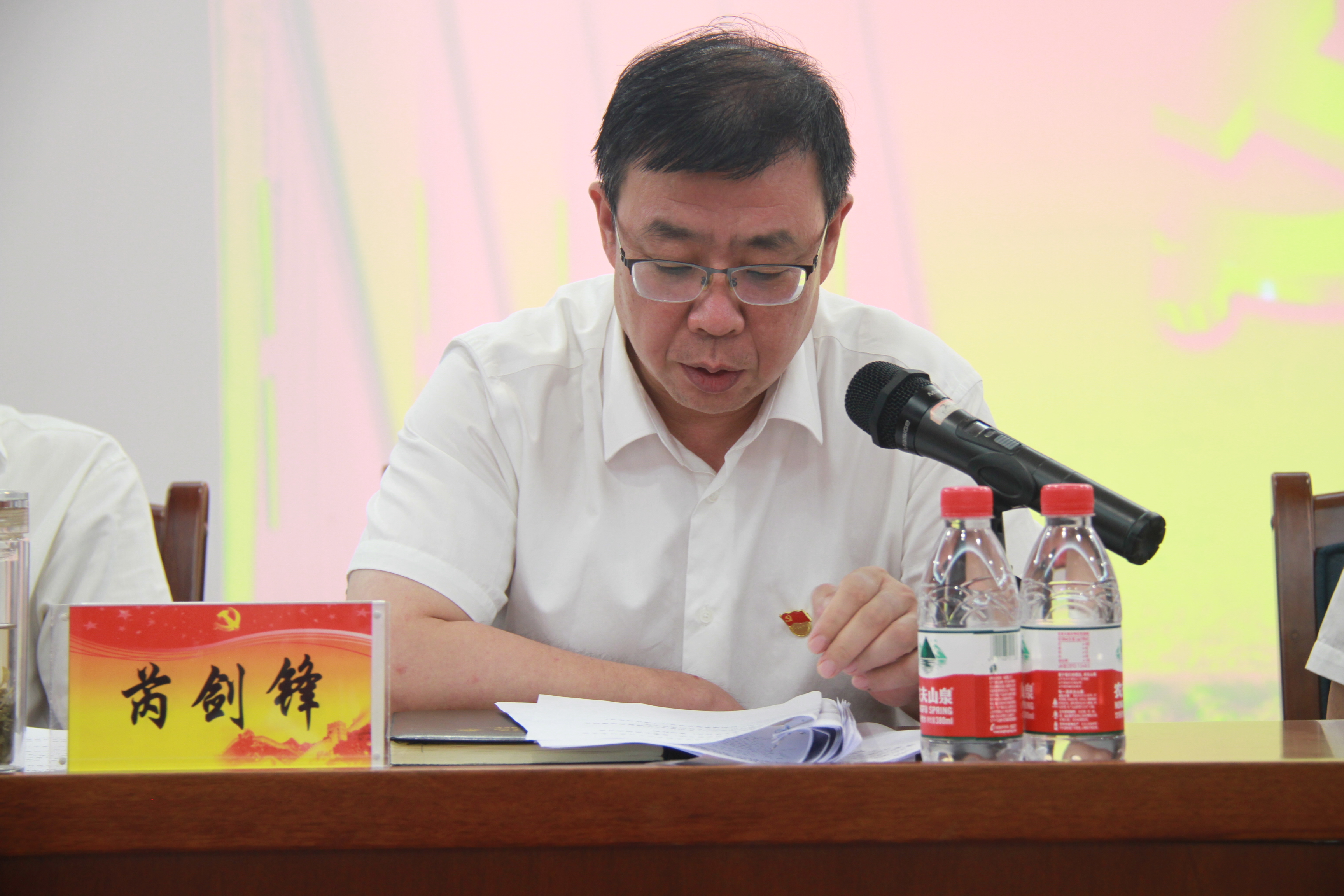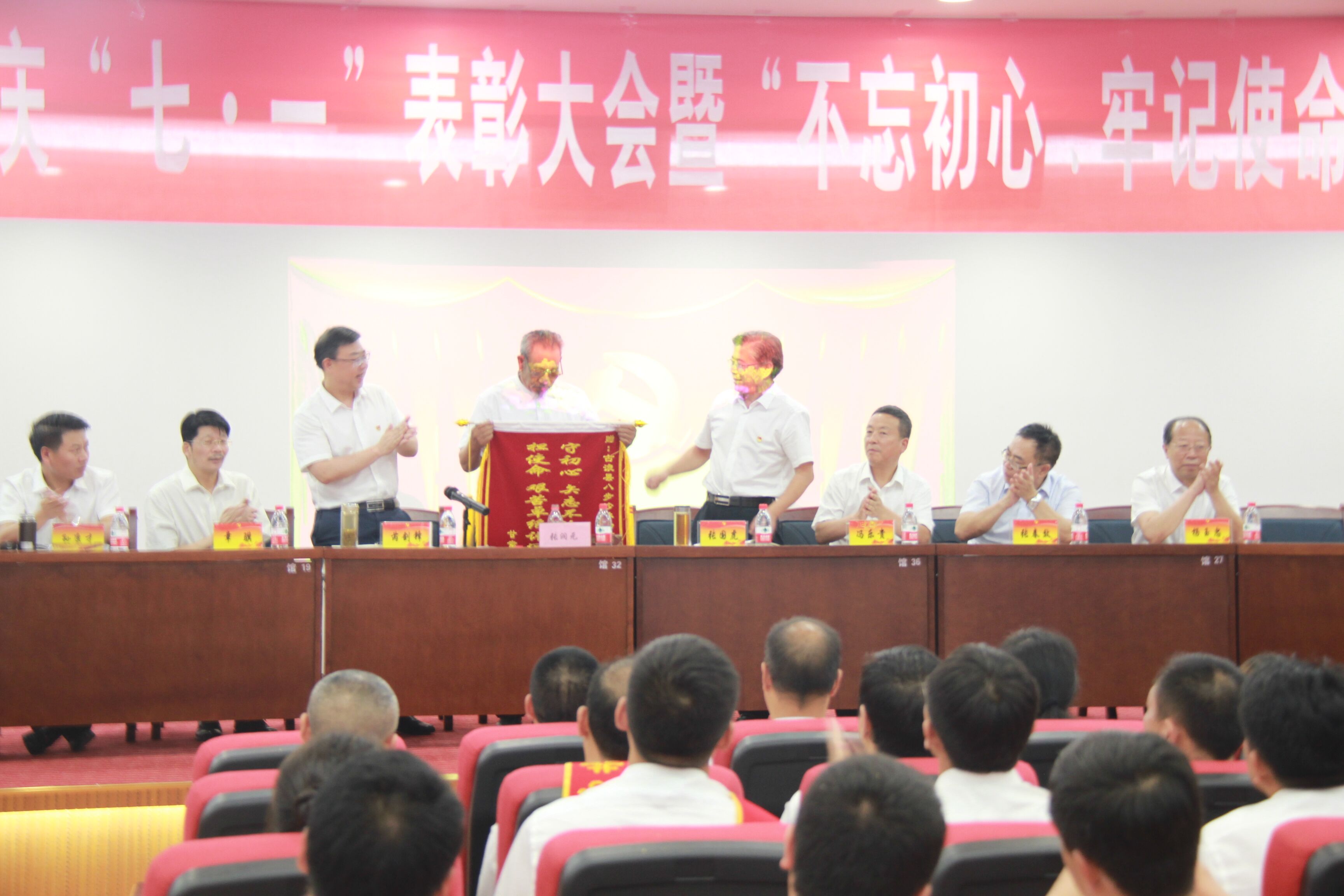 下午,公司黨委慶“七·一”表彰大會暨“不忘初心、牢記使命”主題教育推進會在《歌唱祖國》《今天是你的生日》《不忘初心》等愛國歌曲中拉開帷幕,黨委副書記、紀委書記芮劍鋒主持會議。